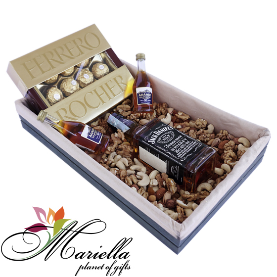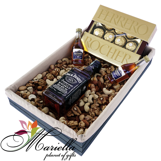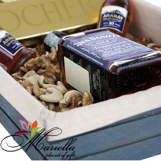 Բարձրացրու տրամադրությունդ մեր յուրահատուկ նվեր տուփով: Կոնյակի, շոկոլադե կոնֆետների, վիսկիի և չարազի հիանալի անակնկալ նրա համար, ում ցանկանում եք երջանկացնել: Յուրահատուկ և դետալների հանդեպ ընդգծված ուշադրությամբ պատրաստված այս տուփը դուր կգա բոլորին: