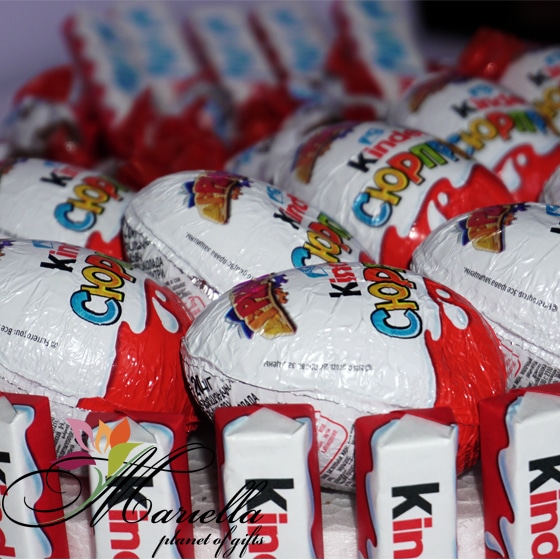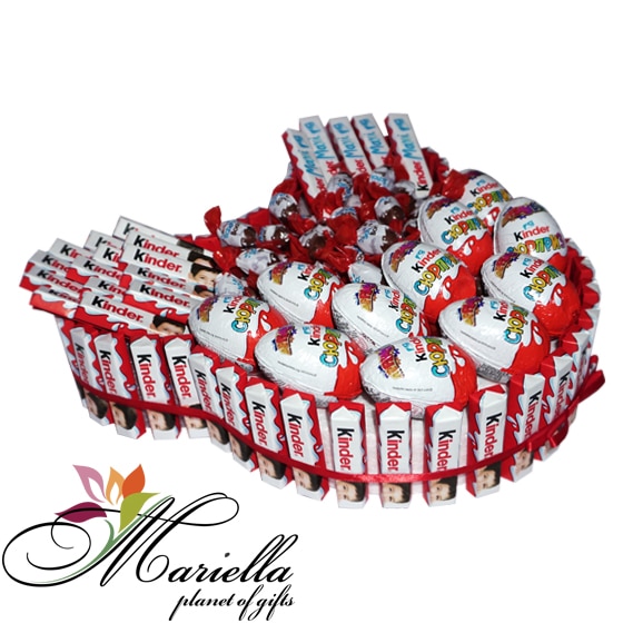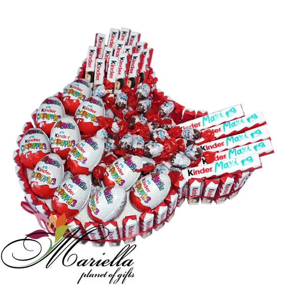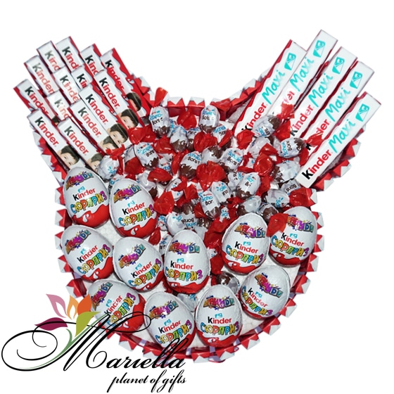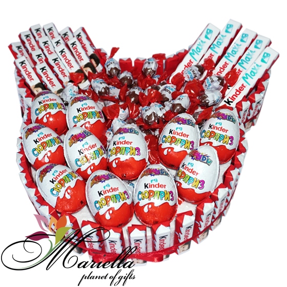 Կինդեր շոկոլադե կոնֆետները և կինդեր անակնկալ ձվիկները՝ ձևավորված գեղեցիկ փաթեթավորմամբ, կդառնան շատ գեղեցիկ և քաղցր նվեր: Այս քաղցր կոմպոզիցիան կպարգևի դրական էմոցիա և ժպիտ:
